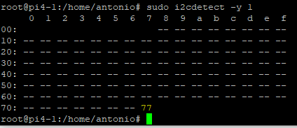 Comprobaremos que nos detecta el dispositivo en el bus I2C
